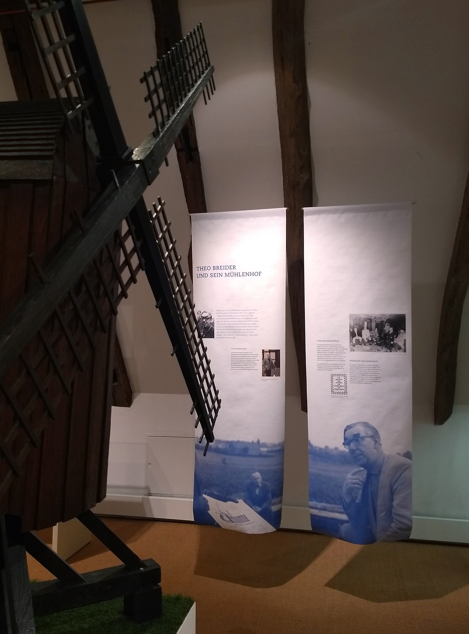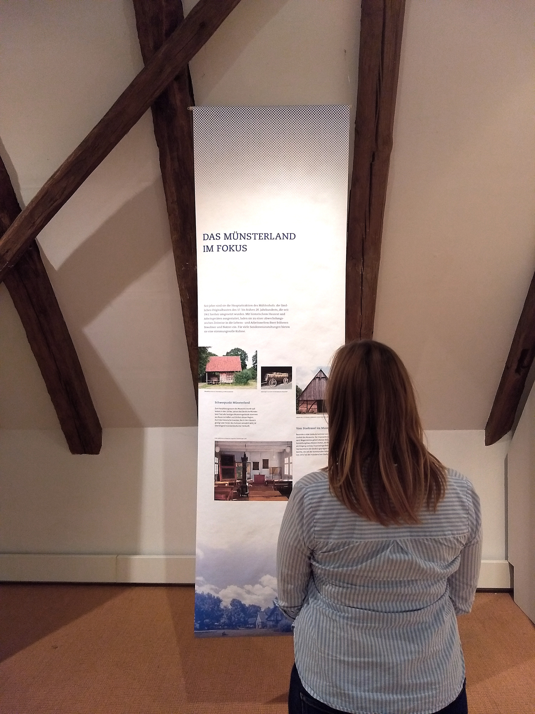Für die Jubiläumsausstellung "60 Jahre Mühlenhof" entstanden zehn Banner, die den Himmel des Freilichtmuseums in das fensterlose Dachgeschoss holten.